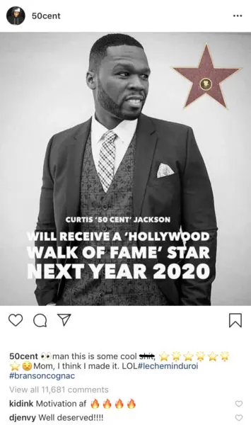 50 Cent had a few words for the honor on Instagram.
