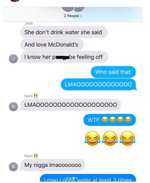 Their new beef apparently started when Amarie posted a screenshot of a conversation between her and her friends on her IG story. In the group chat, the ladies are making fun of a woman who they said eats McDonald’s and doesn’t drink water.