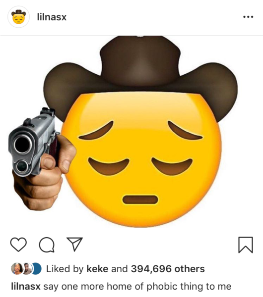 With that announcement came some homophobic remarks, bashing the breakout star for opening up about his sexuality. He posted a heartbreaking animation of a sad gun-toting cowboy emoji face with the following humorous caption:
