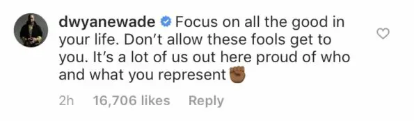 “Focus on all the good in your life. Don’t allow these fools get to you. It’s a lot of us out here proud of who and what you represent”