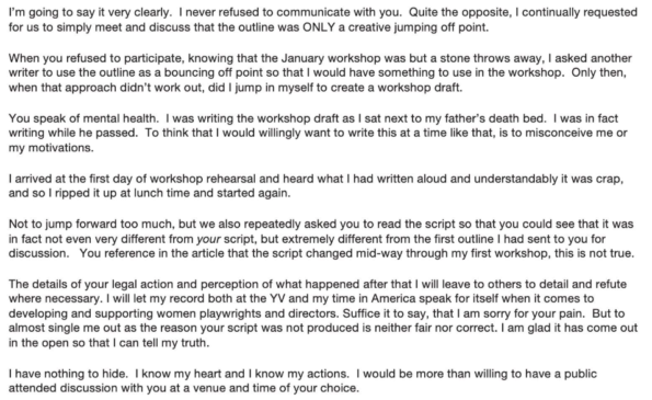 They claimed in their letter they were “bullied and silenced.” They accuse the producers of the play of trying to bribe them with money.