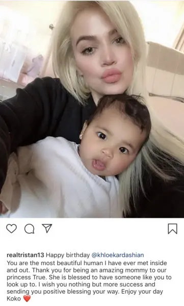 “You are the most beautiful human I have ever met inside and out. Thank you for being an amazing mommy to our princess True. She is blessed to have someone like you to look up to. I wish you nothing but more success and sending you positive blessing your way. Enjoy your day Koko”