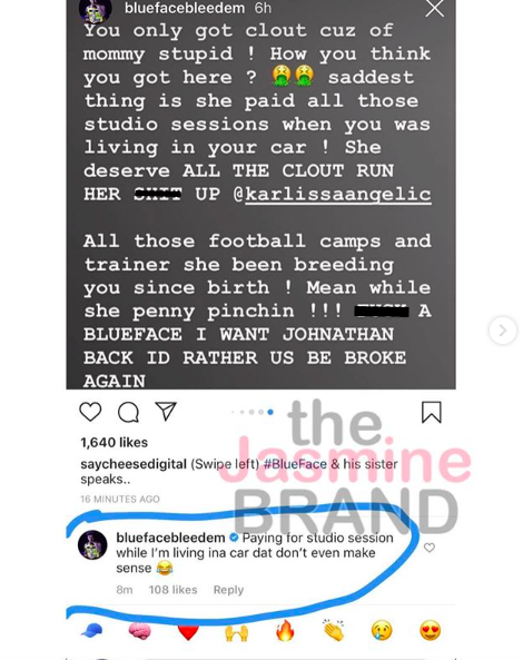 Meanwhile, Blueface continued blasting his family after his sister came to their mom’s defense.