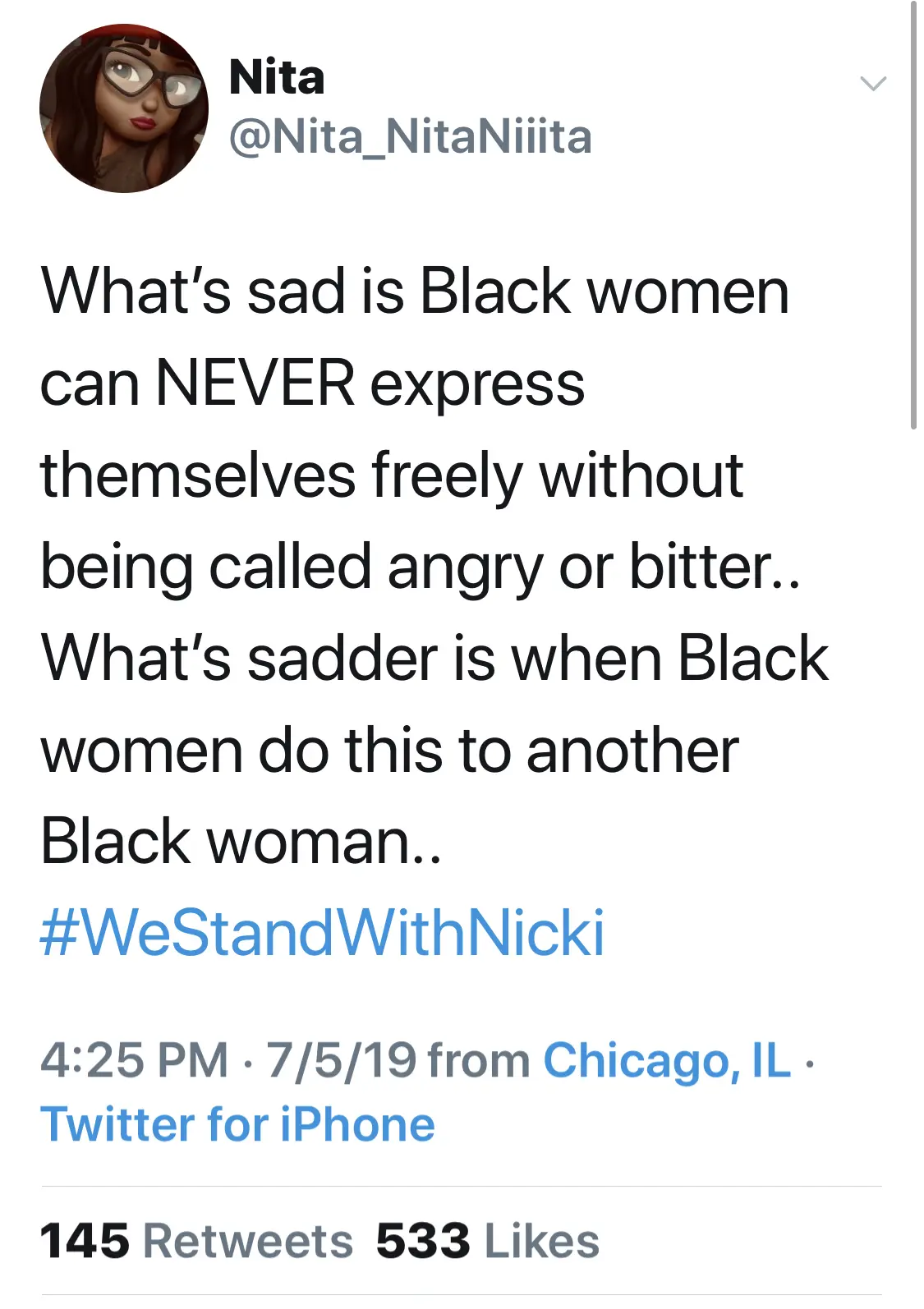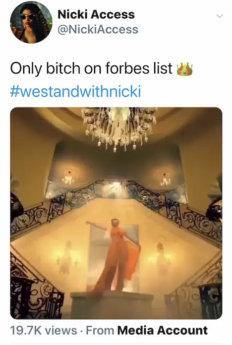 The hashtag: #WeStandWithNicki began trending in the United States at No. 5 on the social media website. Here are just some of the tweets.
