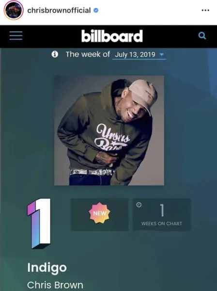 Chris Brown is number 1! His latest project, Indigo, is number 1 on Billboard’s 200 chart. He moved 108,000 units equivalent to album units as of Thursday, July 4 for the 32-tracklist album. Out of that number, 28,000 were actually album sales.