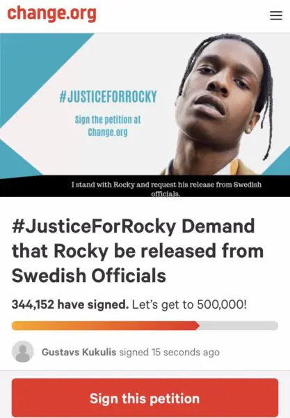 Join us in the #JusticeForRocky movement and demand that Rocky be released from Swedish officials immediately.”