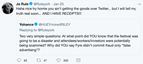 Ja Rule faced backlash on social media shortly after two documentaries centered around the scandal was released, Fyre Fraud on Hulu and Fyre on Netflix.