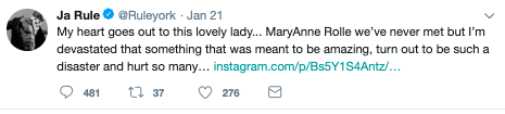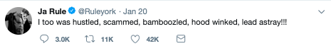 Ja Rule insisted on Twitter that he would never knowingly scam someone.