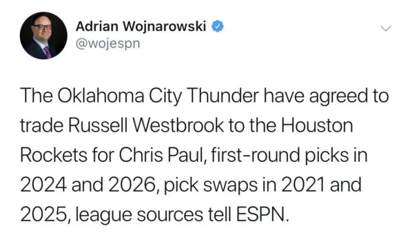 Russell Westbook Traded To Houston Rockets For Chris Paul & Multiple 1st Round Draft Picks