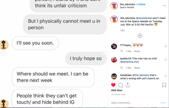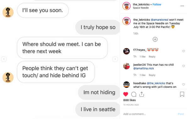 “Where should we meet. I can be there next week… People think they can’t get touch/and hide behind IG”