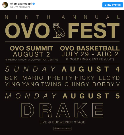 Drake announced the lineup for his highly anticipated OVO Fest in Toronto July 29 thru August 5. B2K, Mario, Pretty Ricky, Lloyd, Ying Yang Twins, Chingy, Bobby Valentino, and of course Drake will be hitting the stage.