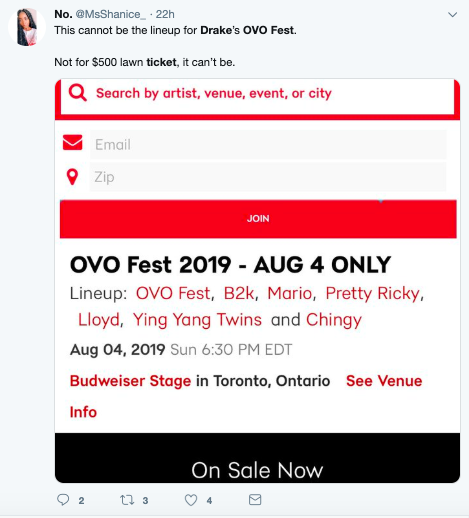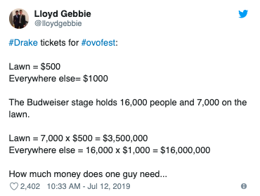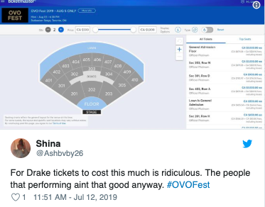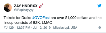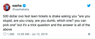 Lmfao! $500 dollars for lawn tickets to #OVOFest?! Is @Drake bringing Michael Jackson, Tupac, and Notorious B.I.G. back from dead? pic.twitter.com/YZymQlL8Q3