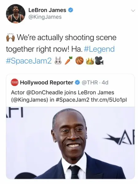 Another big ticket draw for the new “Space Jam” is actor Don Cheadle. Lebron James tipped fans that he and Don had already shot scenes together.