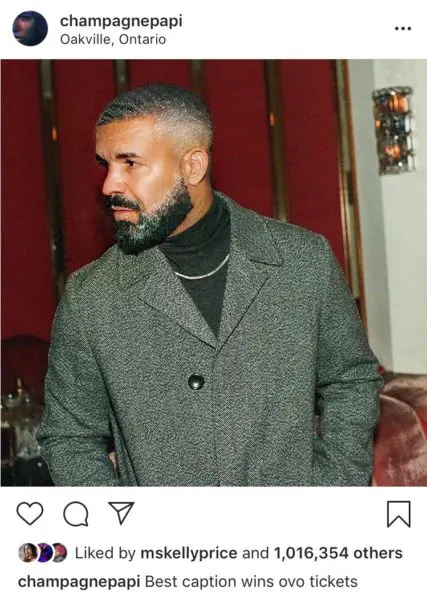 Drake added a chance at OVO Festival tickets to his #AgeChallenge post. His caption read: