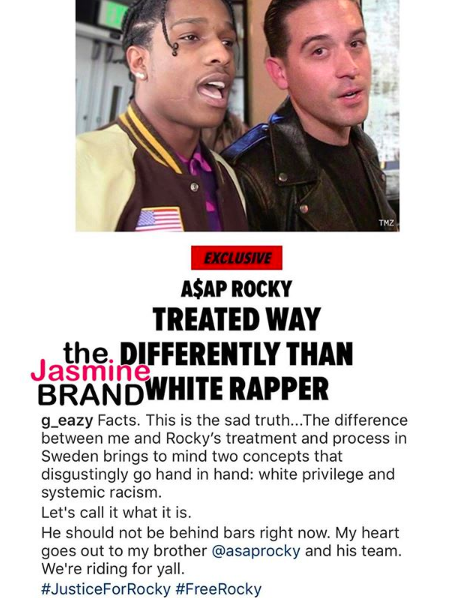 Still, there’s a clear double standard against A$AP Rocky, compared to rapper G-Eazy who was also arrested in Sweden last year. He was accused of attacking a security guard and possessing cocaine.