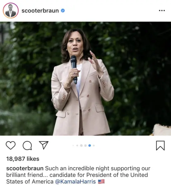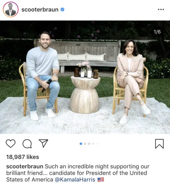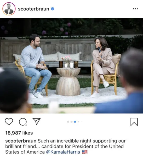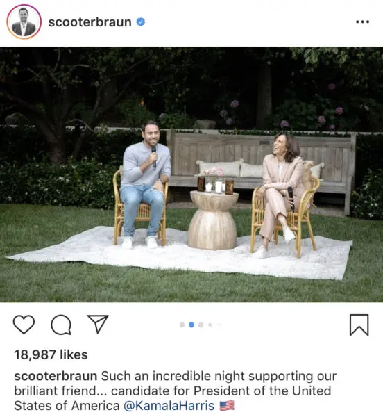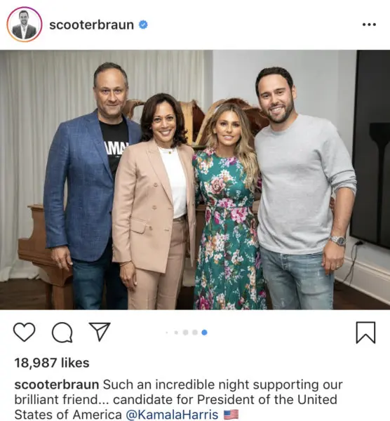 The snapshot was taken at Harris’s fundraiser in California.