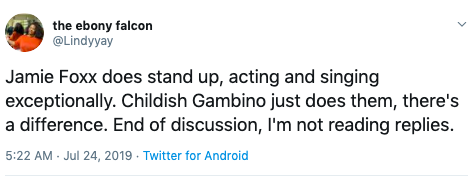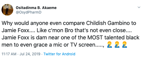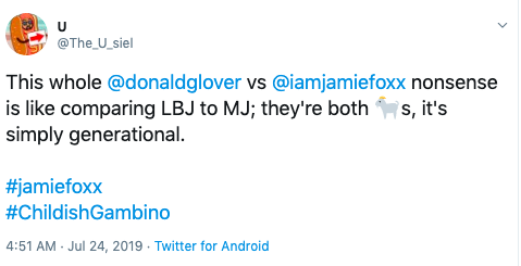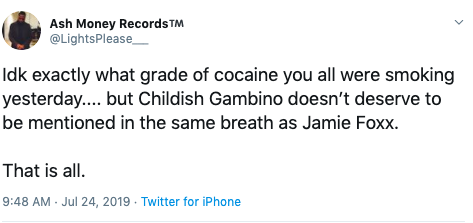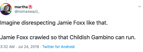 Whom ever said Childish Gambino > Jamie Foxx pic.twitter.com/P1uGDRatT9