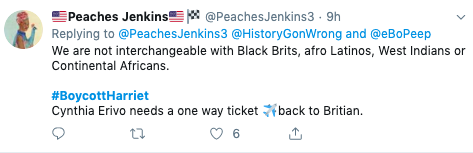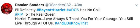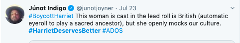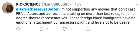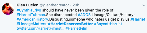 Yea not going to see this she’s not African American she doesn’t understand black & she makes fun American Black women…. my is black & American this movie means something to us … she’s trash #BoycottHarriet pic.twitter.com/BZUH7fAIzc