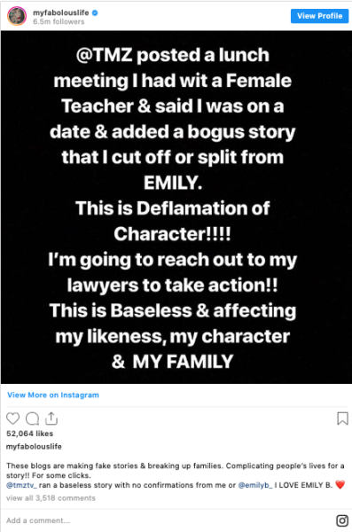 “The narrative is that I love Emily. That’s t he mother of my kids. I’m not gonna let y’all f*** that up. For some fake s***? For what, a story just to click on? For everybody to talk about? Then whatever come behind it…then it looks like it’s on me. Whatever hapens, it’s ‘Oh yeah Fab…’ Nah. Especially when I’m trying to f***ing be with this woman. How the f***? Nah, this s*** ill. I had to sit and marinate on this s***. Somebody did this, for some reason. So y’all stay woke. We ain’t even in the mix. Where did she come from? I ain’t in the mix. I ain’t been on no blogs.”