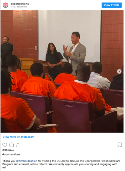 “Thank you @KimKardashian for visiting the DC Jail to discuss the Georgetown Prison Scholars Program and criminal justice reform. We certainly appreciate you sharing and engaging with us!”