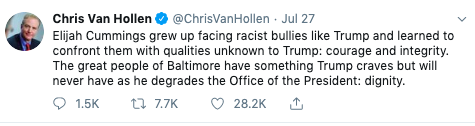Maryland Senator Chris Van Hollen jumped to Cummings’ defense as well.