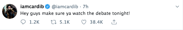 Cardi reportedly had been at the venue for a sound check prior to the postponement. She hasn’t said anything about the postponement, but she did encourage fans to watch Tuesday night’s Democratic presidential primary debate.