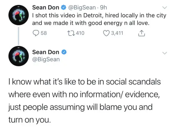 After releasing the video, Sean took to Twitter explaining his approach for the “Single Again” Video. He begins taking a stand for his hometown and hiring locally only,