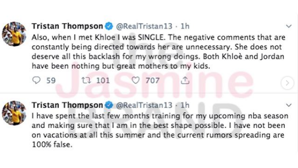 Neither Jordan or Khloe have yet to respond Tristan’s tweets.