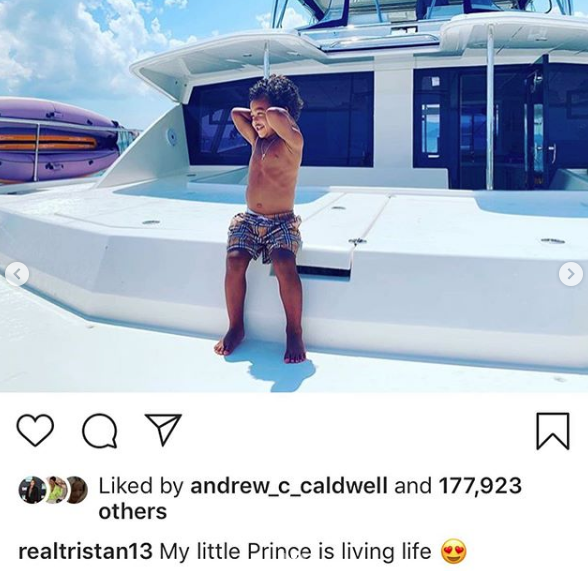 Tristan Thompson is shooting down speculation that he’s currently vacationing with his ex Jordan Craig, whom he shares a son with. Recently, he posted a photo of their son Prince on vacay, while Jordan posted a similar photo. The images led some to speculate that the pair were together.