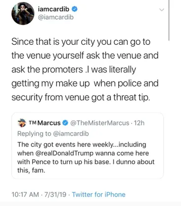 Meanwhile, reports and Cardi said earlier this week that the show was canceled because of a “security threat. She tweeted,