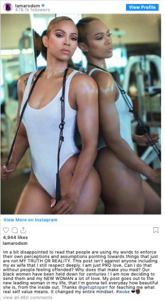 “Im a bit disappointed to read that people are using my words to enforce their own perceptions and assumptions pointing towards things that just are not MY TRUTH OR REALITY. This post isn’t against anyone including my ex wife that I still respect deeply. I am just PRO love. Can I do that without people feeling offended? Why does that make you mad? Our black women have been held down for centuries ! I am now deciding to send them and my NEW WOMAN a lot of love. My post goes out to the new leading woman in my life, that I’m gonna tell everyday how beautiful she is, from the inside out. Thanks @getuptoparr for teaching me what real self value means. It changed my entire mindset. #woke“