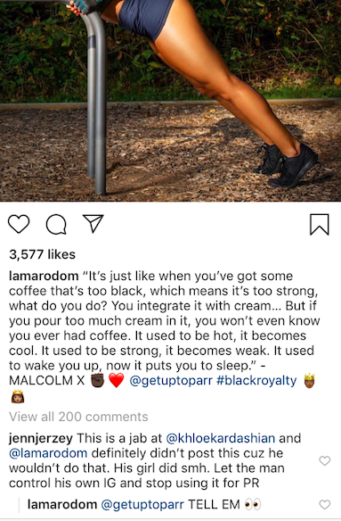 “This is a jab at @khloekardashian and @lamarodom definitely didn’t post cuz he wouldn’t do that. His girl did smh. Let the man control his own IG and stop using it for PR.”