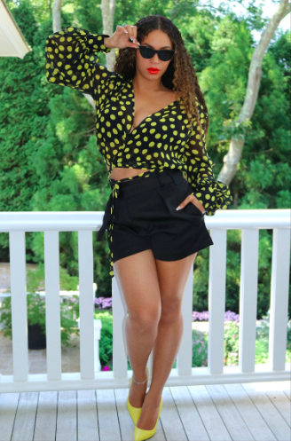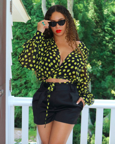 Beyonce has been giving it to us lately! And her latest post is no different. She rocked a yellow and black polka dot top from Attico for $731. She paired it with a pair of high-waist satin shorts and yellow pointed-toe stilettos and an ankle bracelet. She topped it off with a bright red lip.