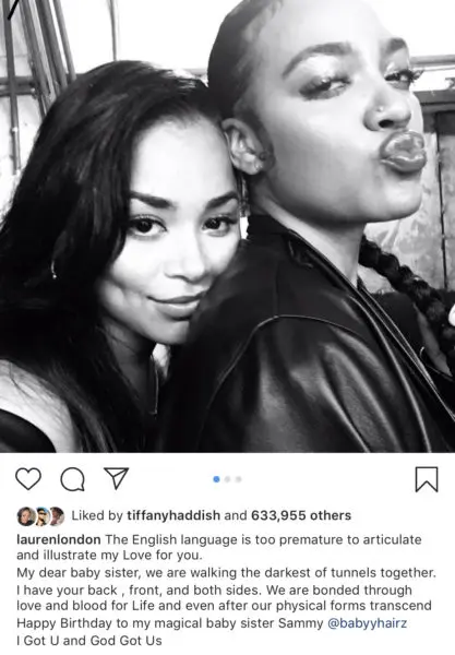 “We are bonded through love and blood for Life and even after our physical forms transcend. Happy Birthday to my magical baby sister Sammy. I Got U and God Got Us.”