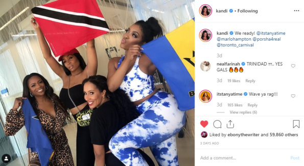 Our favorite Georgia peaches invaded Toronto, Canada this weekend! “Real Housewives of Atlanta” stars Porsha Williams, Kenya Moore, Marlo Hampton, Cynthia Bailey, and Kandi Burruss got a little more festive than their trips from past years, with Canadian housewife, Tanya Smith, showing them around! The ladies participated in this year’s Caribana Festival. Caribana is a massive party that celebrates Carribean culture, known for it’s parade in which participants wear blinged out, feathery swimsuit-style costumes.