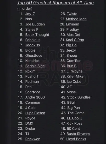 Greatest rapper of all time list