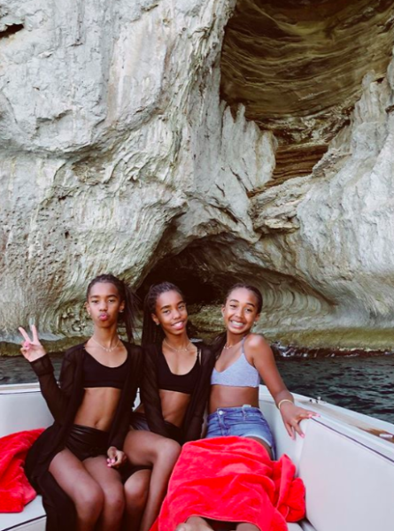 The family was all smiles as they enjoyed dinner and conversation. They went from jumping off of a boat to dancing on it and swimming in the ocean.