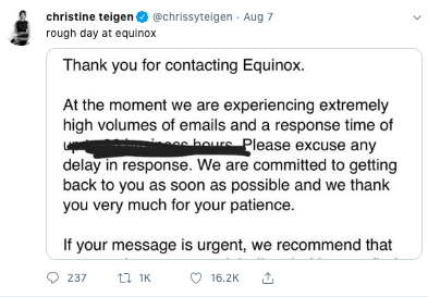 Teigen hasn’t responded but she’s certainly not afraid to back down after she went in on Soul Cylce and Equinox.