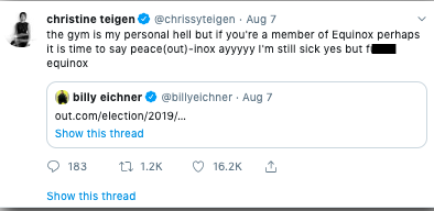Teigen hasn’t responded but she’s certainly not afraid to back down after she went in on Soul Cylce and Equinox.