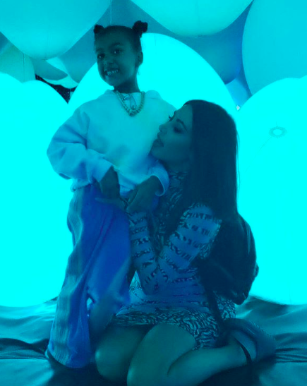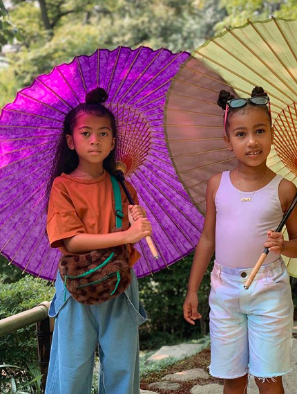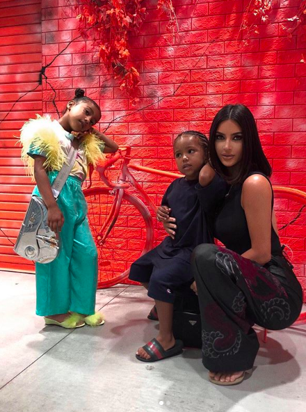 In one photo, Kardashian even let North rock her $35,000 rare Dior bag that debuted in Japan last year. Japanese artist Hajime Sorayama helped design the saddlebag. And West had no shame in wearing grey sweats.