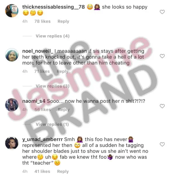 ”I meaaaaan, if sis stays after getting her teeth knocked out, it’s gonna take a hell of a lot more for her to leave other than him cheating.”