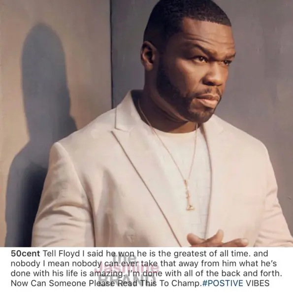 “Tell Floyd I said he won he is the greatest of all time. And nobody I mean nobody can ever take that away from him what he’s done with his life is amazing. I’m done with all of the back and forth. Now Can Someone Please Read This To Champ.”