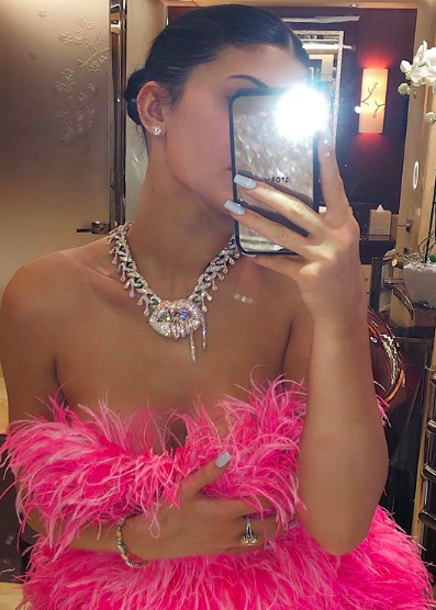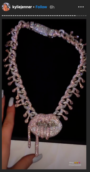 She rocked a necklace that her longtime boyfriend, Travis Scott, gifted her with.