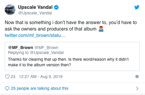 Upscale Vandal, who works with Pusha denied speculation that Pusha wanted his verse removed after finding out Lil Wayne would be on the same song.