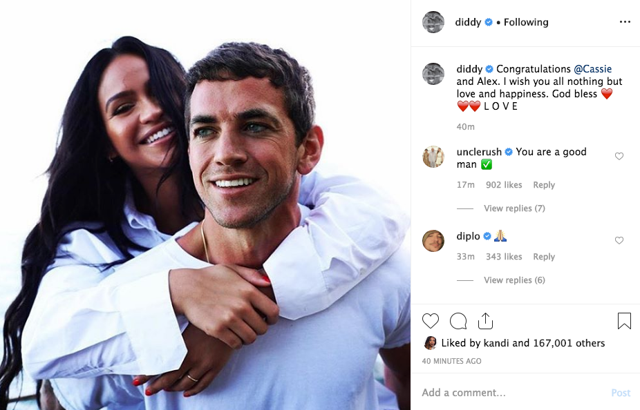 Cassie’s long-term ex Diddy even chimed in congratulating the pair.