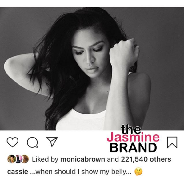 Cassie is teasing her baby bump! This week, the 32-year-old singer posed a question, asking fans when she should show off her belly.