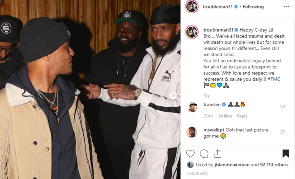 The mother of his 10-year-old daughter Emani – Tanisha “Chyna Hussle” Foster, controversially wished Nipsey a happy birthday with an old, intimate photo. Her caption read: