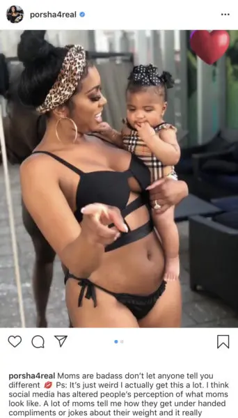 She shared a photo of her and her daughter, Pilar Jhená on social media, and blasted people who pressure moms to get back to their pre-pregnancy bodies. In true Porsha fashion, she said she’s unbothered by the critics. She added that she loves her post-baby body and she’s in no rush to change it, and encouraged other moms to take on the same mentality.