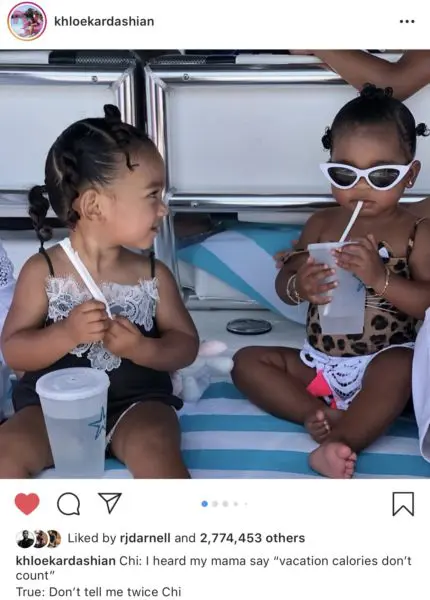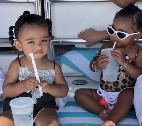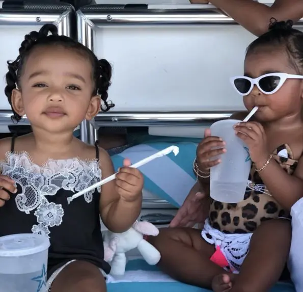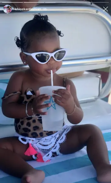 Chi, wore a cute black and white outfit, while True, looked absolutely adorable in a leopard-print bathing suit and white sunglasses.