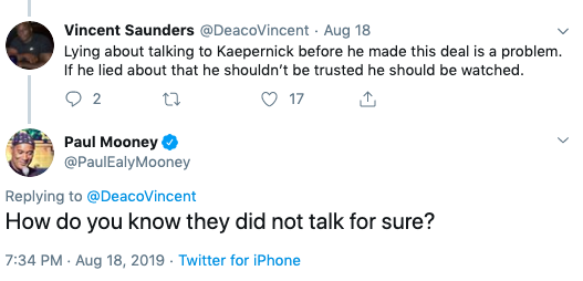 He also challenged whether Jay-Z spoke to Kaepernick before taking the deal.